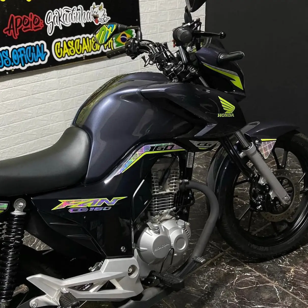O Kit Completo inclui todos os adesivos mostrados na foto, proporcionando uma transformação completa para sua moto.