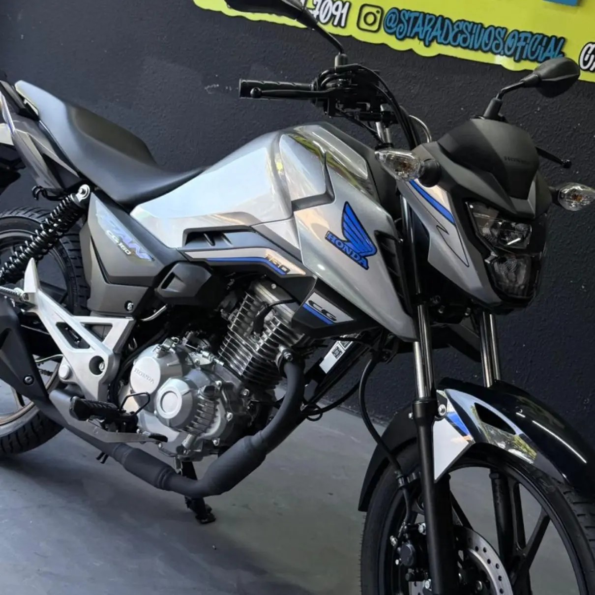 O Kit Completo inclui todos os adesivos mostrados na foto, proporcionando uma transformação completa para sua moto.