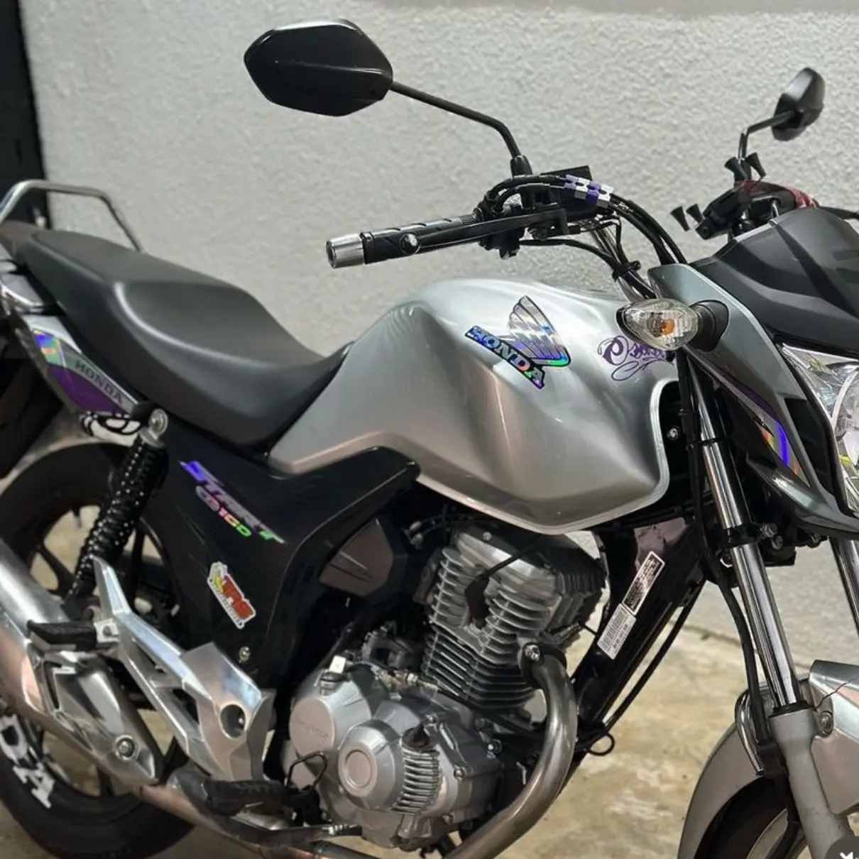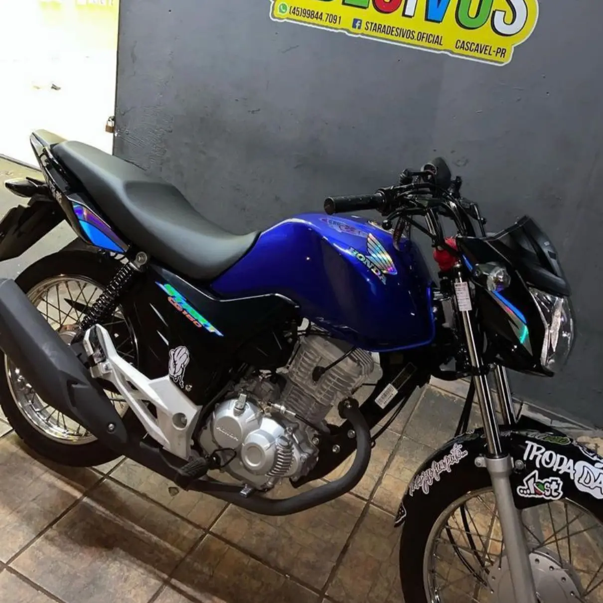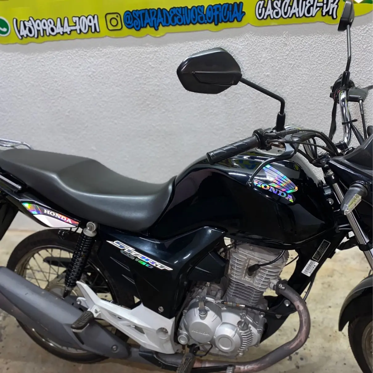 O Kit Completo inclui todos os adesivos mostrados na foto, proporcionando uma transformação completa para sua moto.