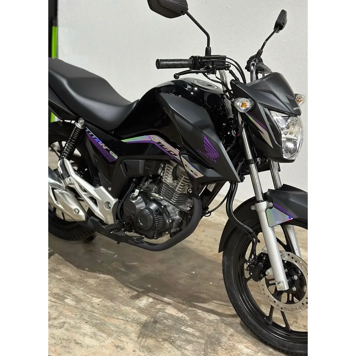 O Kit Completo inclui todos os adesivos mostrados na foto, proporcionando uma transformação completa para sua moto.