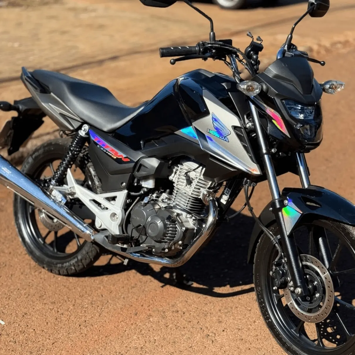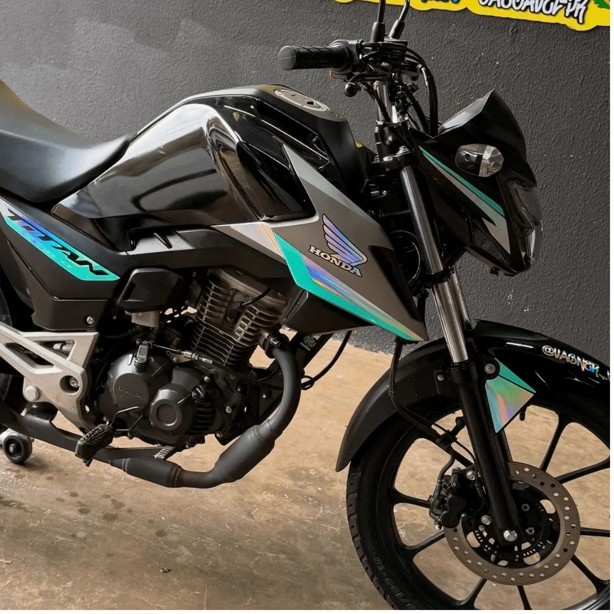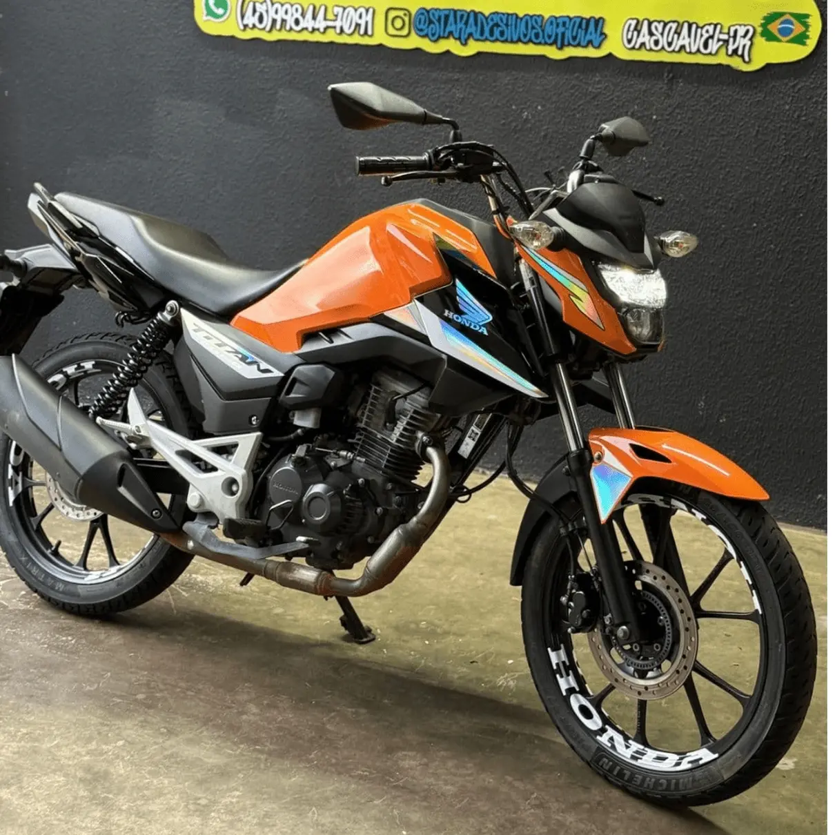 O Kit Completo inclui todos os adesivos mostrados na foto, proporcionando uma transformação completa para sua moto.