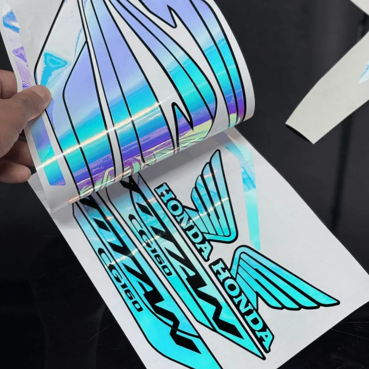Fácil de instalar, basta aplicar por cima dos adesivos originais da sua moto para uma aparência renovada e deslumbrante.